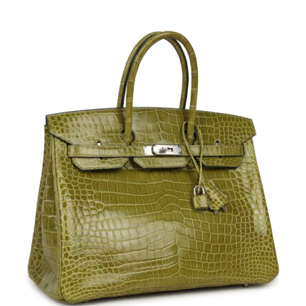 Pre-owned Hermès Birkin 35 Vert Anis Shiny Porosus Crocodile Palladium Hardware