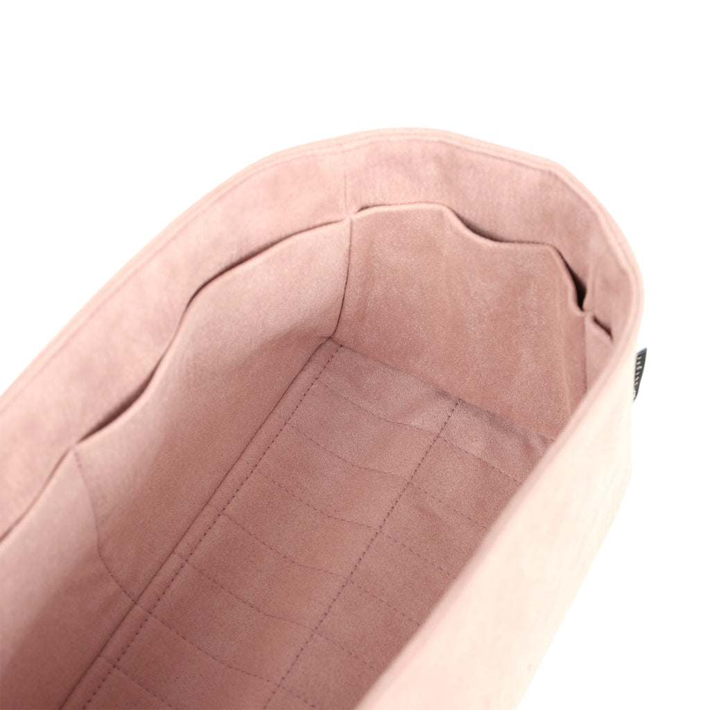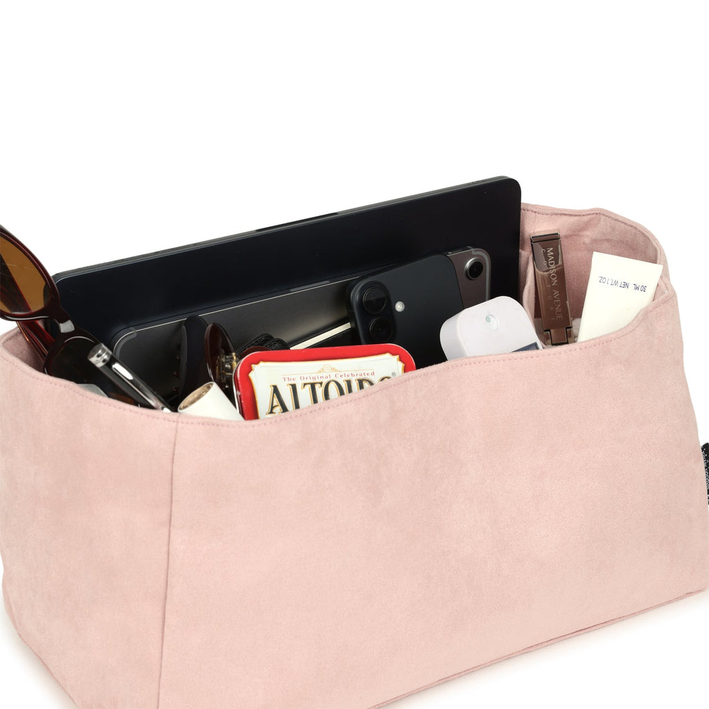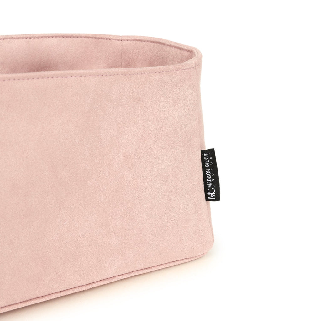 Crafted from premium pink Ultrasuede fabric, the Bag Bestie is liquid-resistant, luxurious, lightweight, and structured to help your handbag retain its iconic shape. Its natural bend design allows the organizer to contour to the interior of the bag, preserving a creaseless, pristine look.