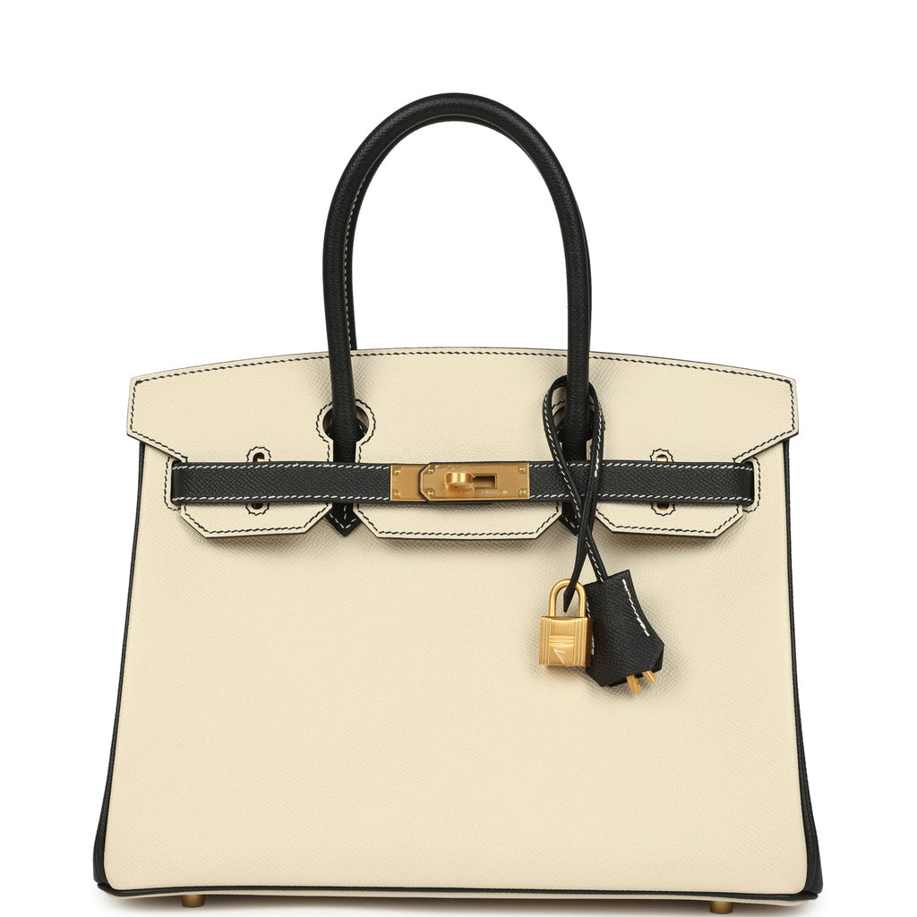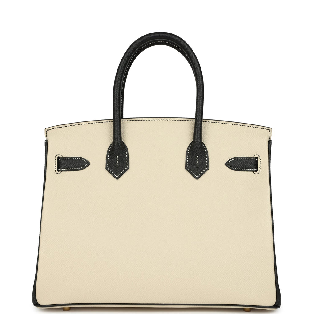 Hermès Special Order (HSS) Birkin 30 Craie and Black Epsom Brushed Gold Hardware