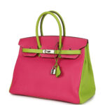 Home Hermès Pre-Owned Birkin Bags for Sale Pre-owned Hermès Special Order (HSS) Birkin 35 Rose Tyrien and Kiwi Epsom Palladium Hardware