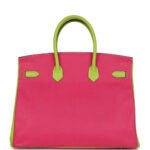 Pre-owned Hermès Special Order (HSS) Birkin 35 Rose Tyrien and Kiwi Epsom Palladium Hardware