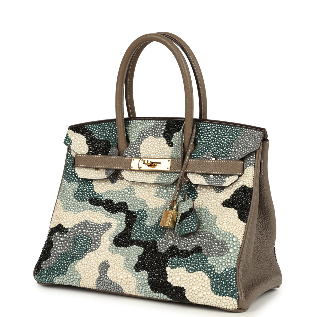 Custom “Camouflage” Swarovski Crystal Hermès Birkin 30 Etoupe Togo Gold Hardware