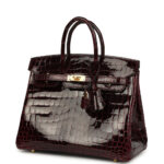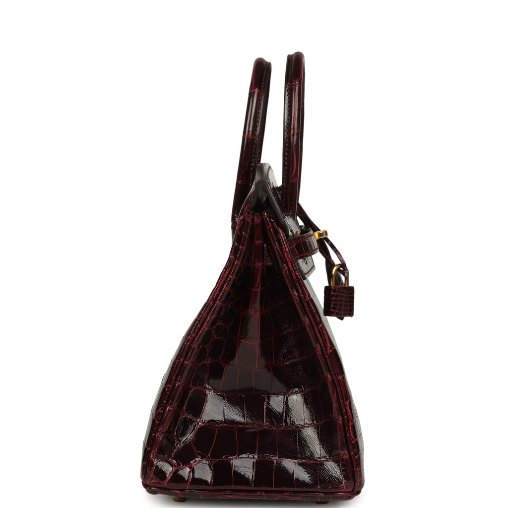 Hermes Birkin 25 Bordeaux Shiny Niloticus Crocodile Gold Hardware