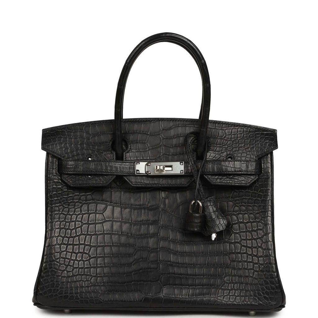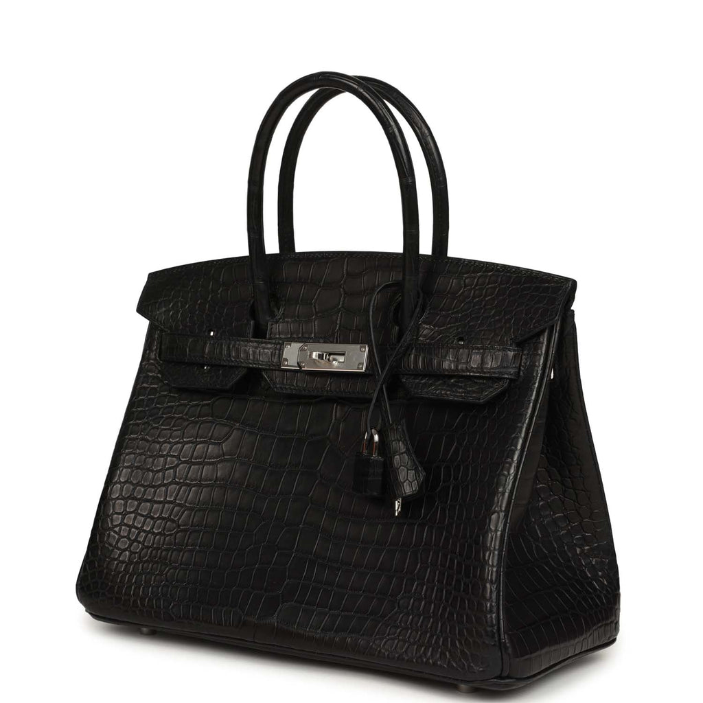 Home Hermès Birkin Bags New Arrivals Hermès Birkin 30 Black Matte Porosus Crocodile Palladium Hardware