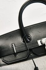 • Canvas exterior with black calfskin leather and silver-tone hardware and canvas lining