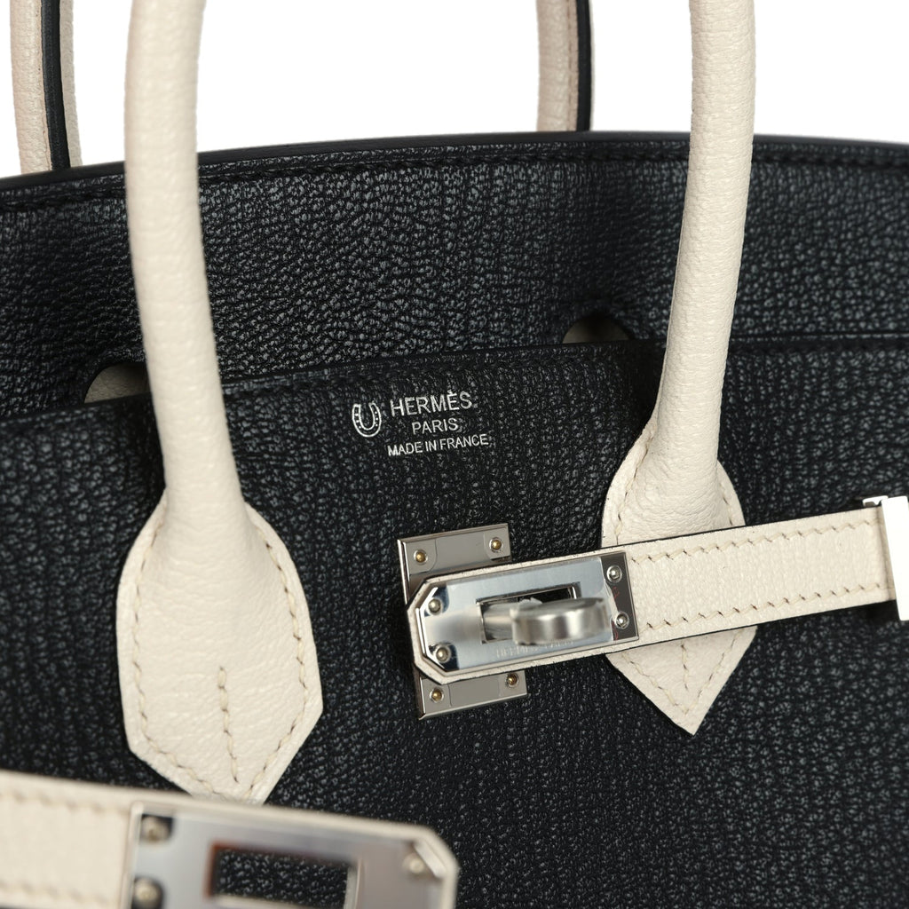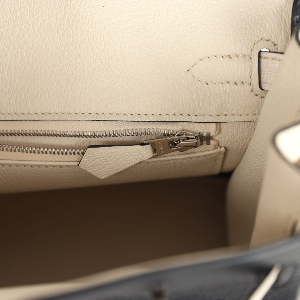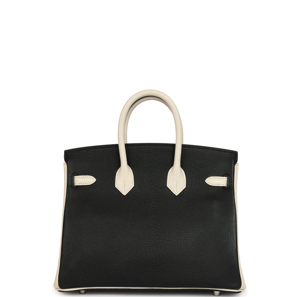 Hermès Special Order (HSS) Birkin 25 Bi-Color Black and Nata Chevre Mysore Palladium Hardware