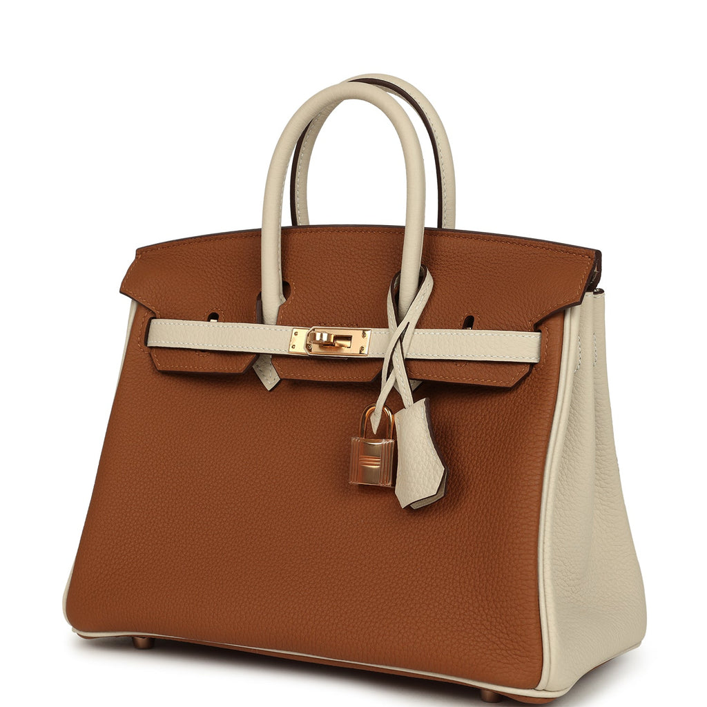 Home Hermès Birkin Bags New Arrivals Hermès Special Order (HSS) Birkin 25 Gold and Craie Togo Rose Gold Hardware