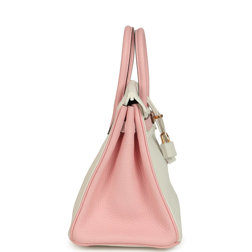 Hermès Special Order (HSS) Birkin 25 Rose Sakura and White Clemence Gold Hardware