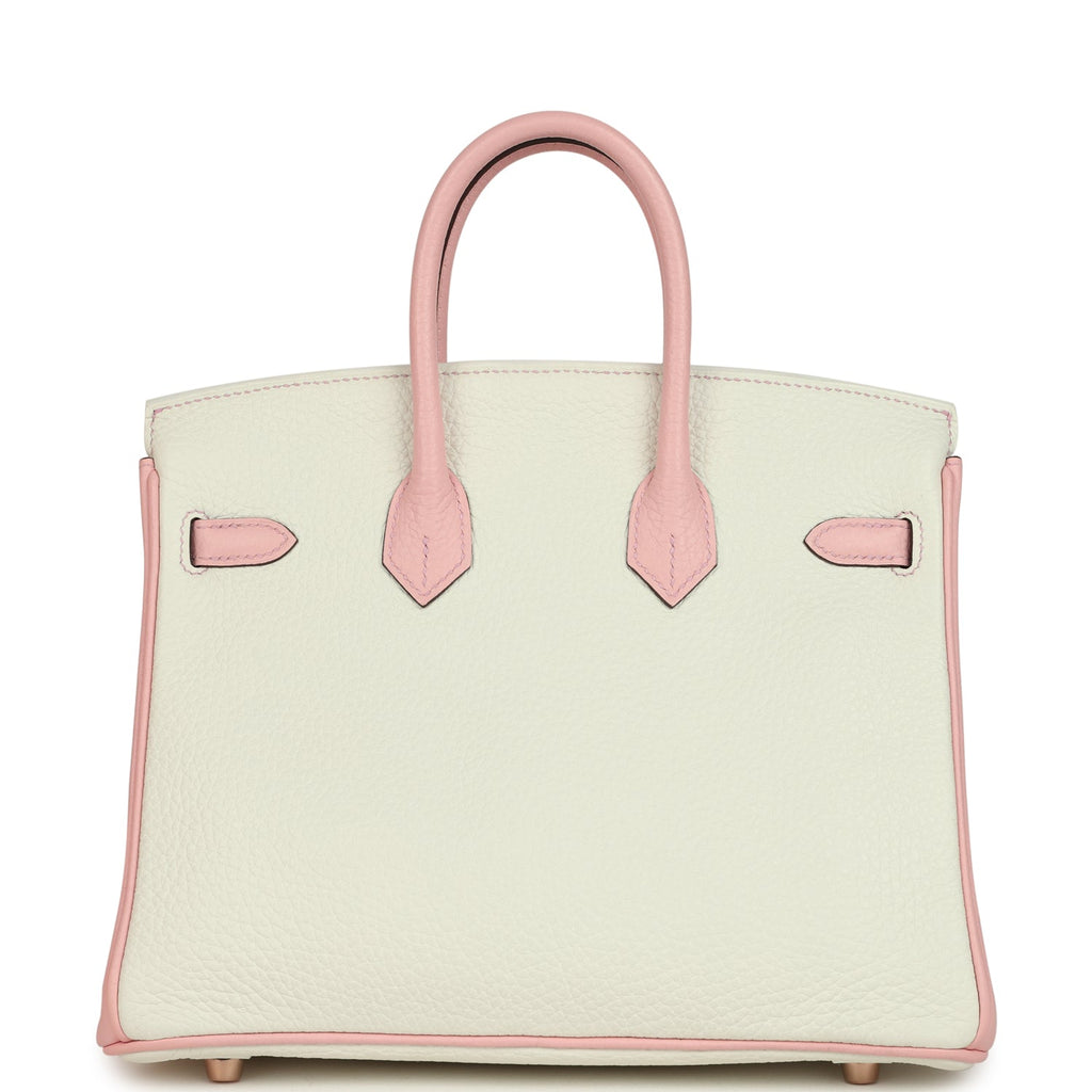 Home Hermès Birkin Bags New Arrivals Hermès Special Order (HSS) Birkin 25 White and Rose Sakura Clemence Rose Gold Hardware