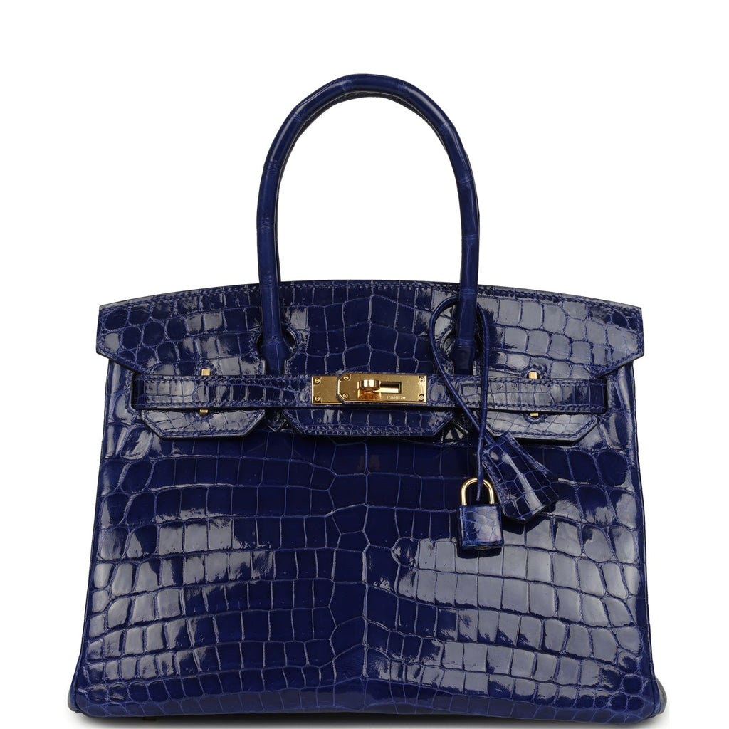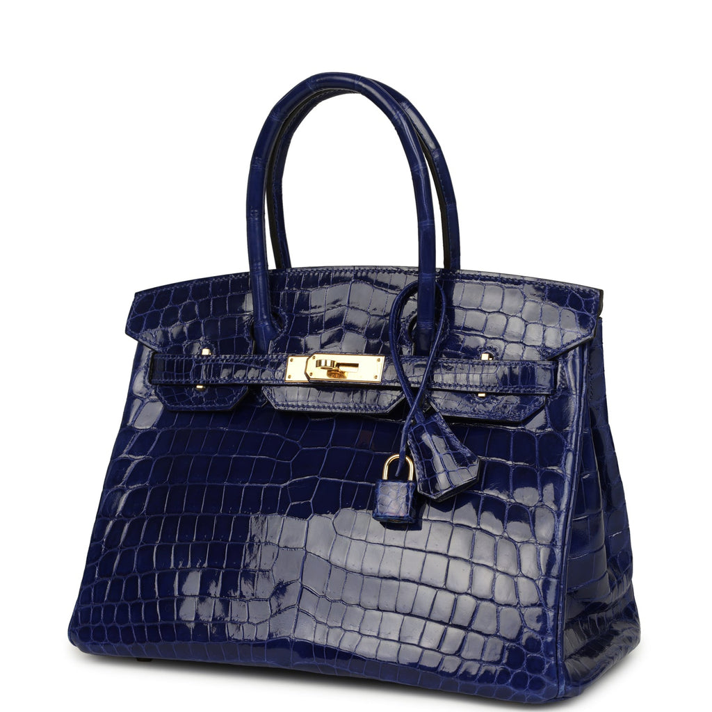 Home Hermès Exotic Handbags For Sale Pre-owned Hermès Birkin 30 Bleu Electric Shiny Niloticus Crocodile Gold Hardware
