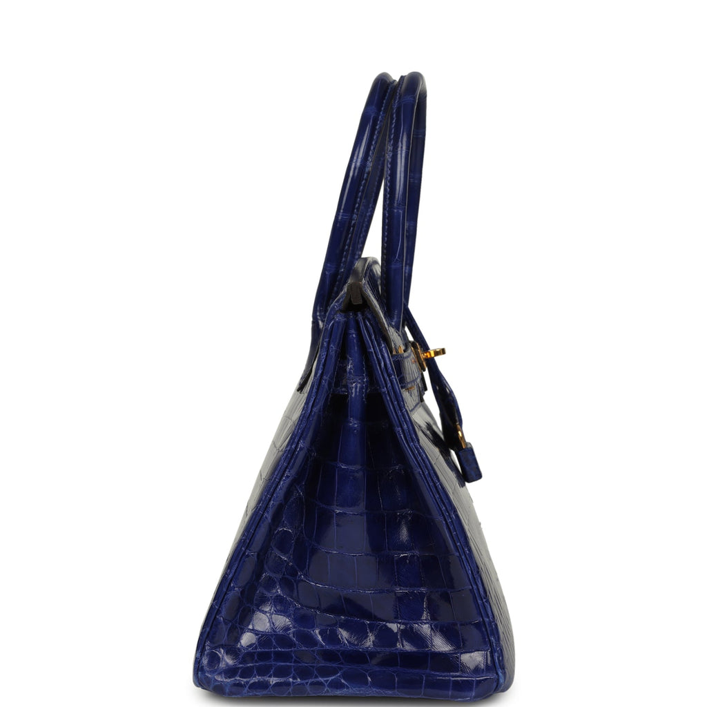 Pre-owned Hermès Birkin 30 Bleu Electric Shiny Niloticus Crocodile Gold Hardware