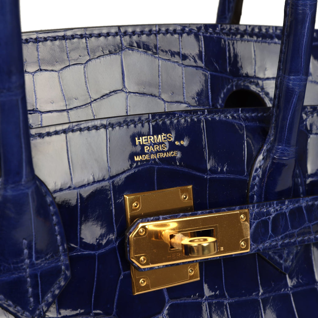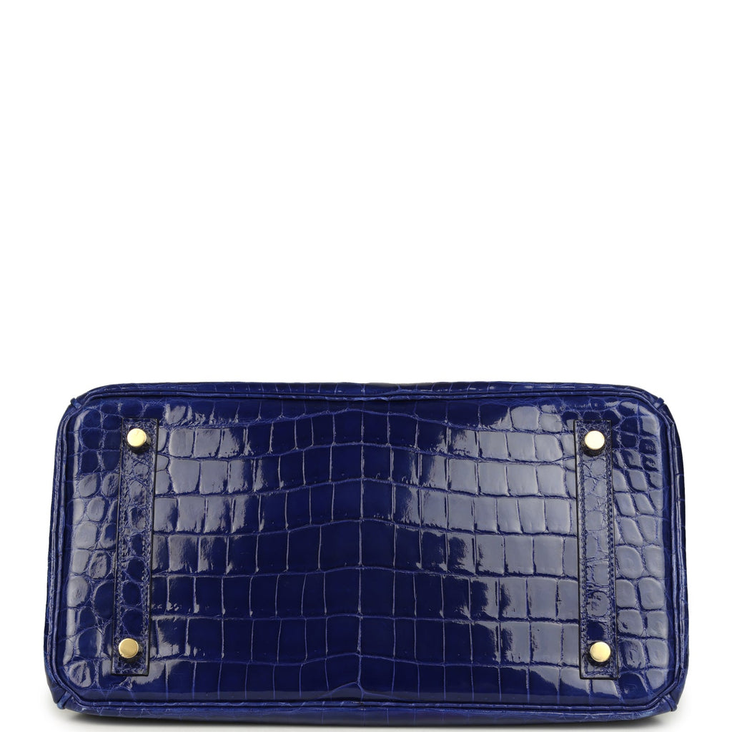 Pre-owned Hermès Birkin 30 Bleu Electric Shiny Porosus Crocodile Gold Hardware $54,500.00