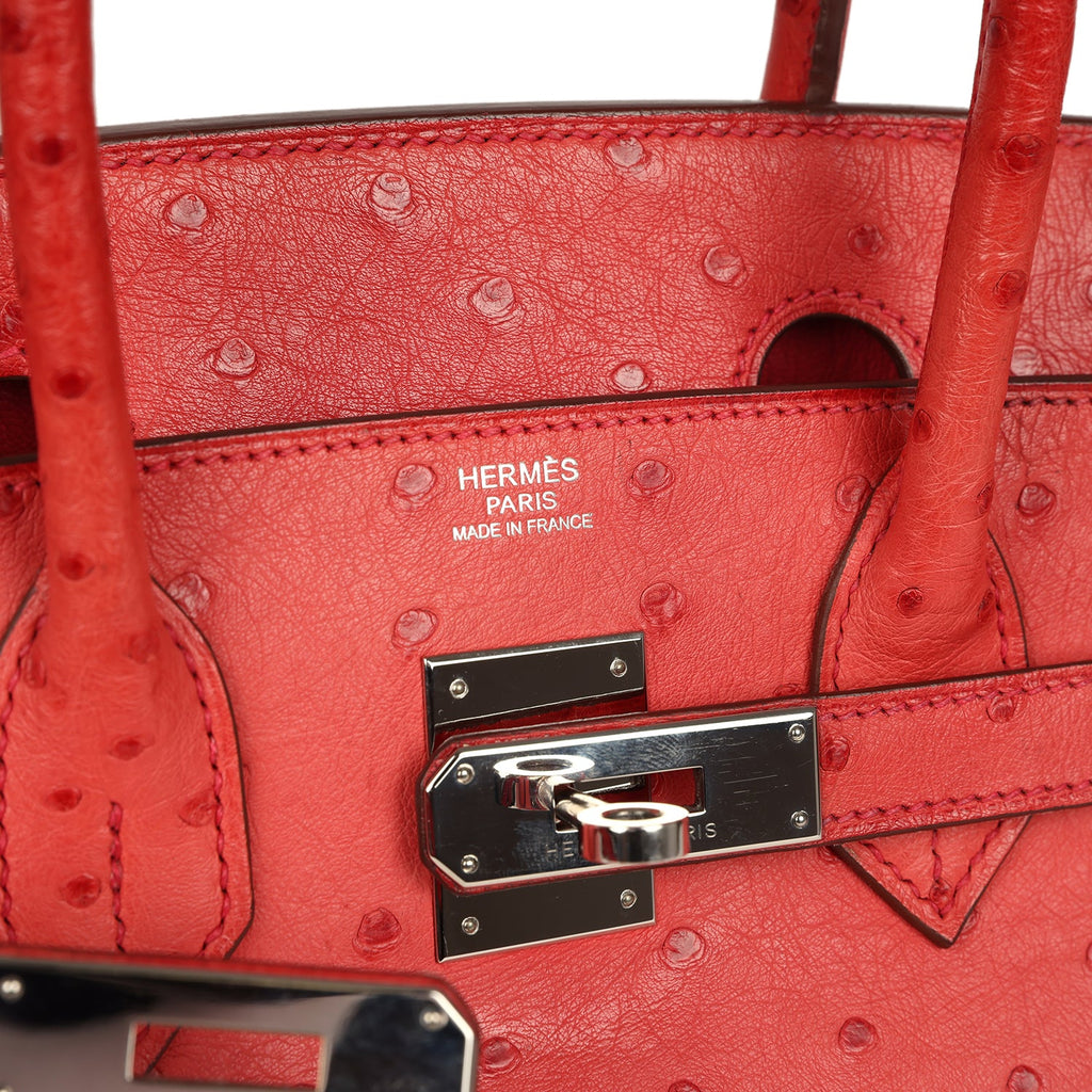 Pre-owned Hermès Birkin 30 Rouge Vif Ostrich Gold Hardware $25,500.00