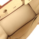 The interior is lined with Parchemin chevre leather and has a zip pocket with an Hermès engraved zipper pull and an open pocket on the opposite side.