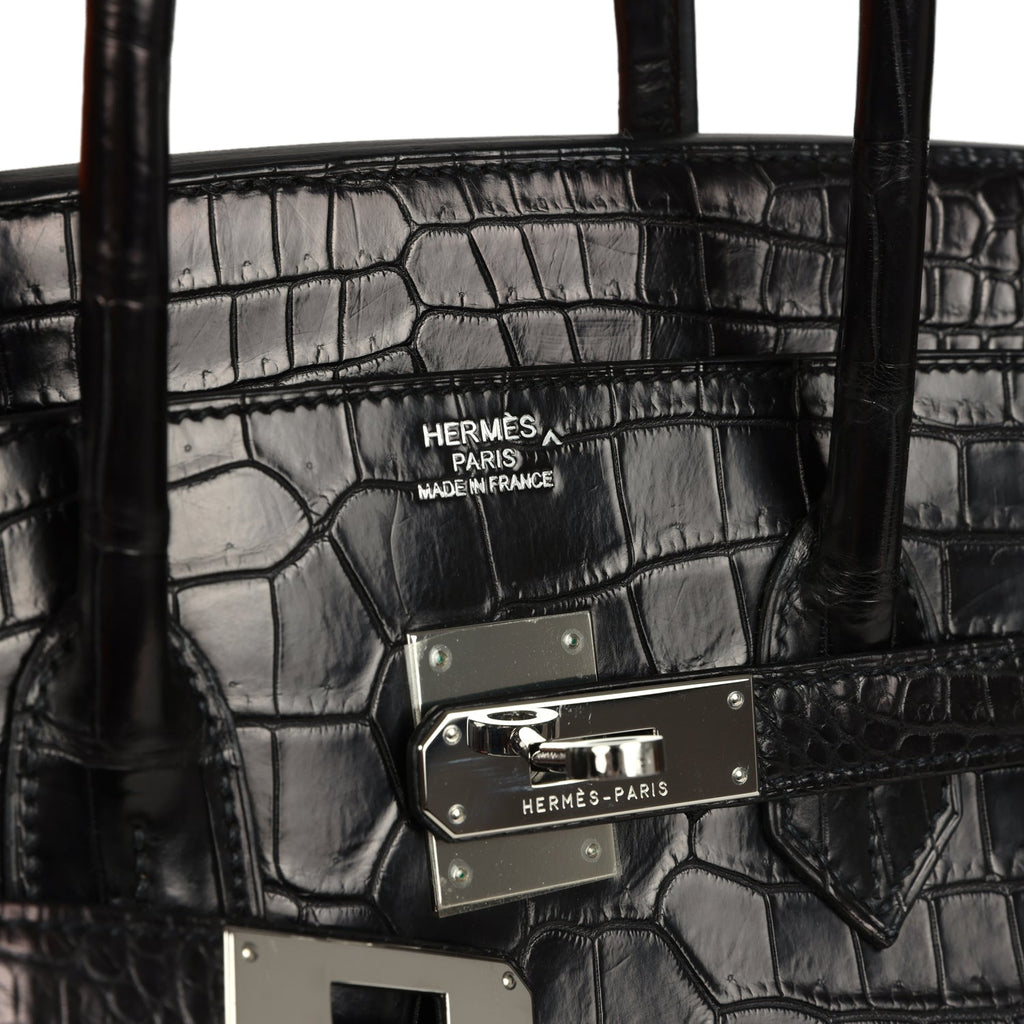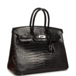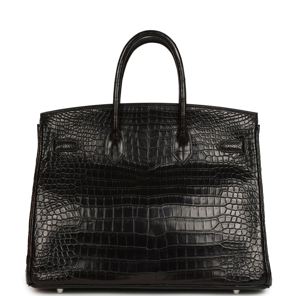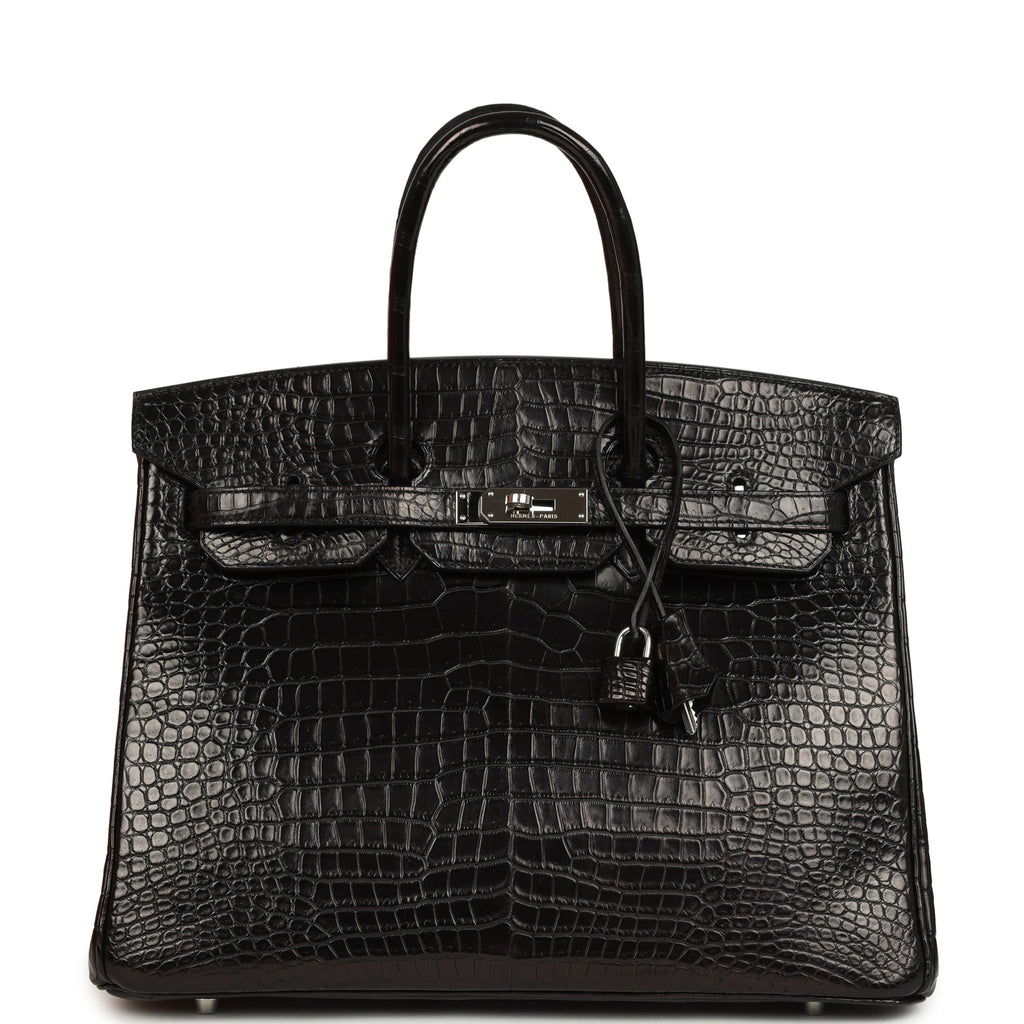 Home Hermès Pre-Owned Birkin Bags for Sale Pre-owned Hermès Birkin 35 Black Matte Porosus Crocodile Palladium Hardware
