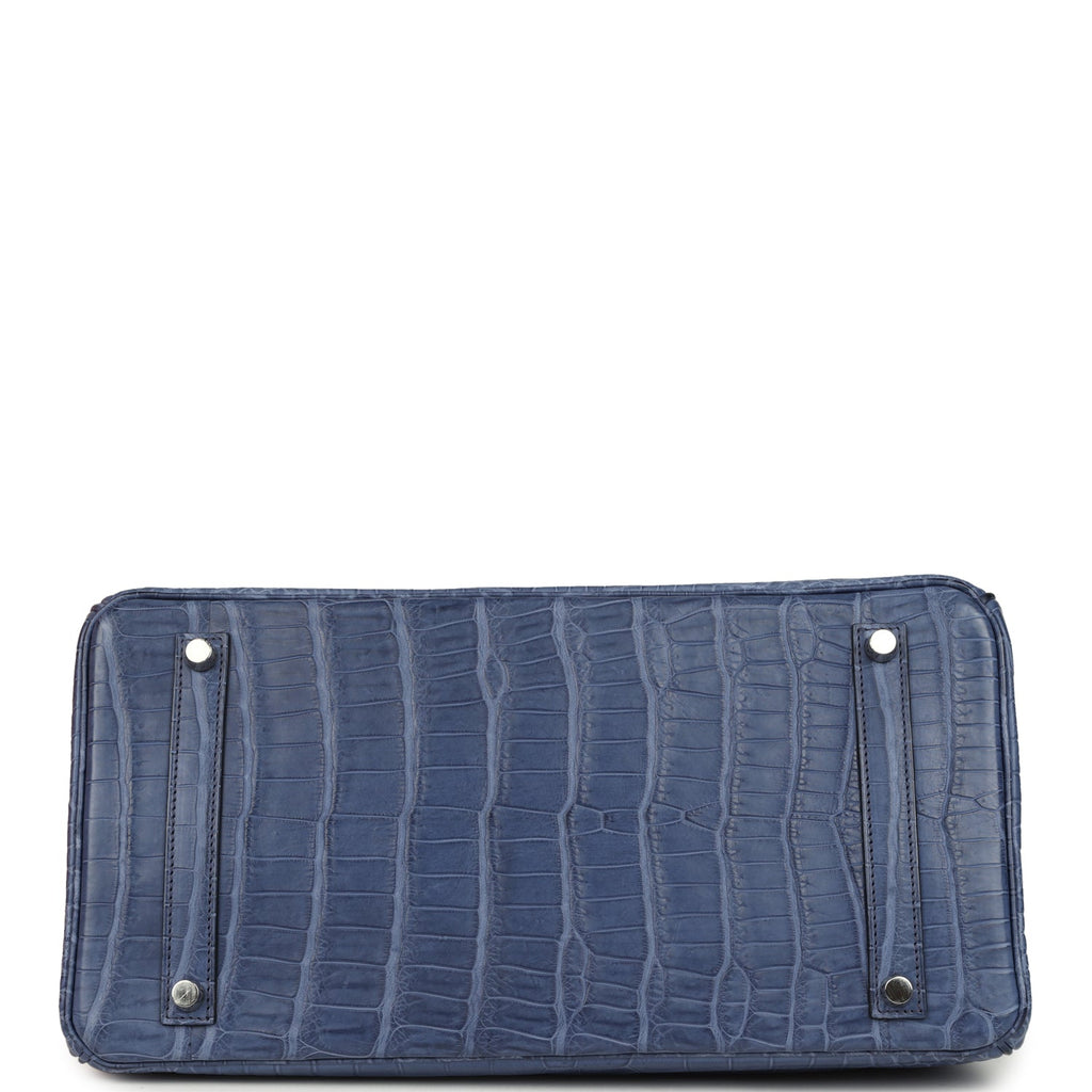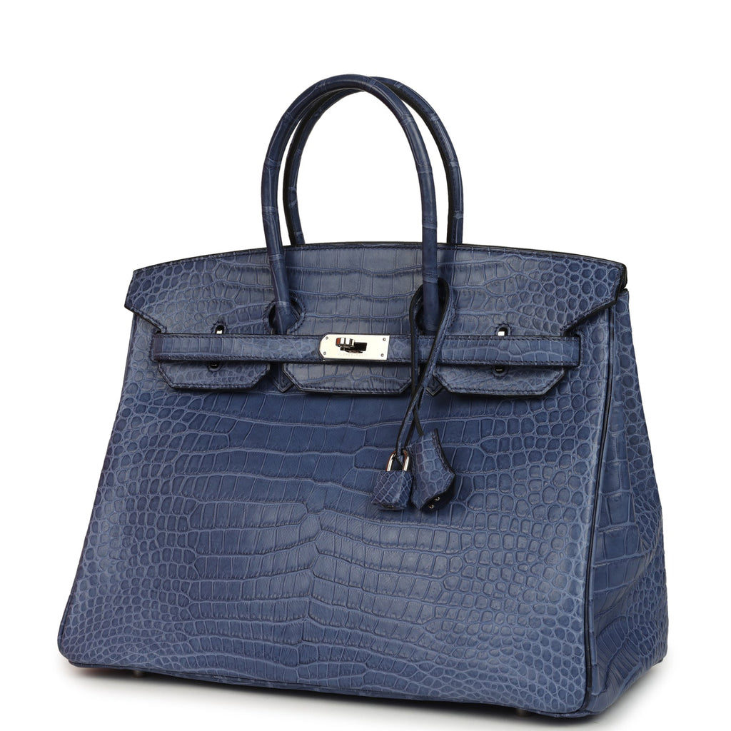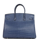 Home Hermès Exotic Handbags For Sale Pre-owned Hermès Birkin 35 Bleu Brighton Matte Porosus Crocodile Palladium Hardware