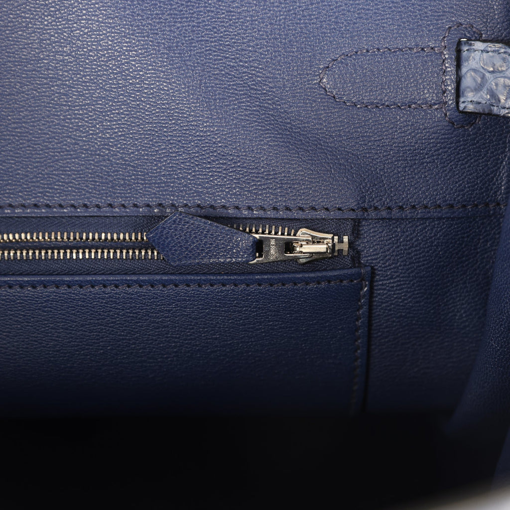 Pre-owned Hermès Birkin 30 Bleu Encre Togo and Shiny Niloticus Crocodile Touch Palladium Hardware