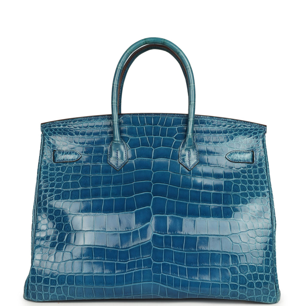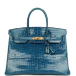Home Hermès Pre-Owned Birkin Bags for Sale Pre-owned Hermès Birkin 35 Mykonos Shiny Porosus Crocodile Gold Hardware