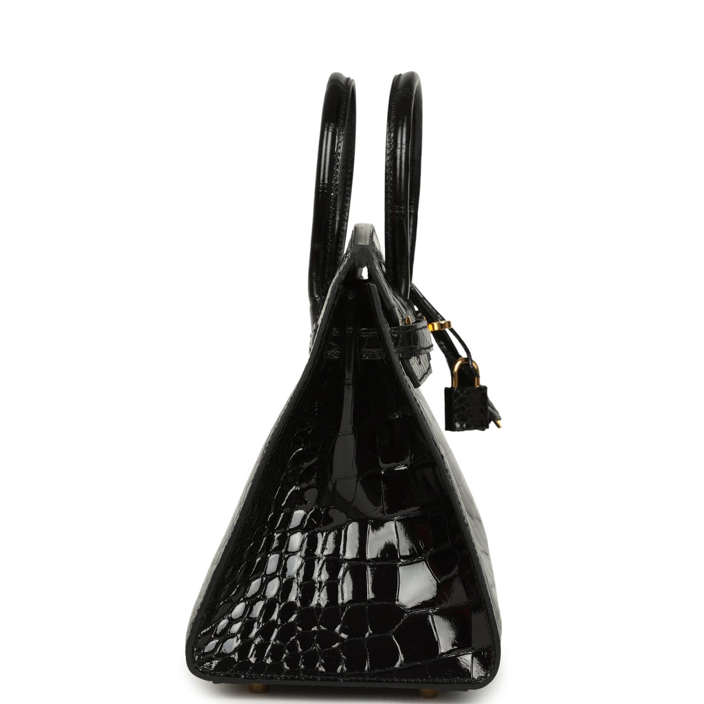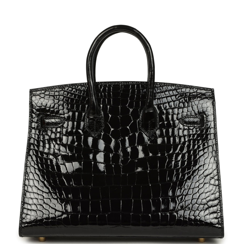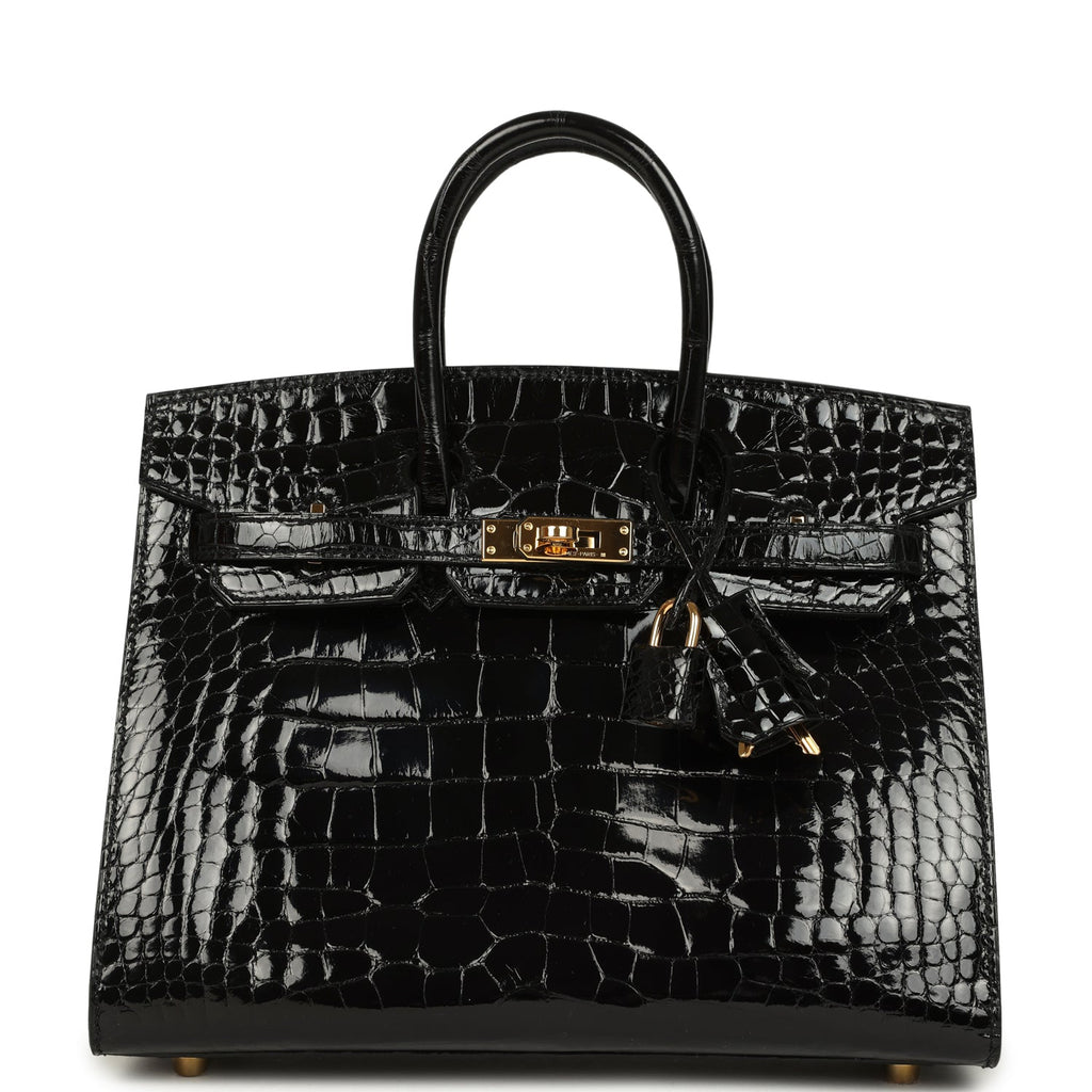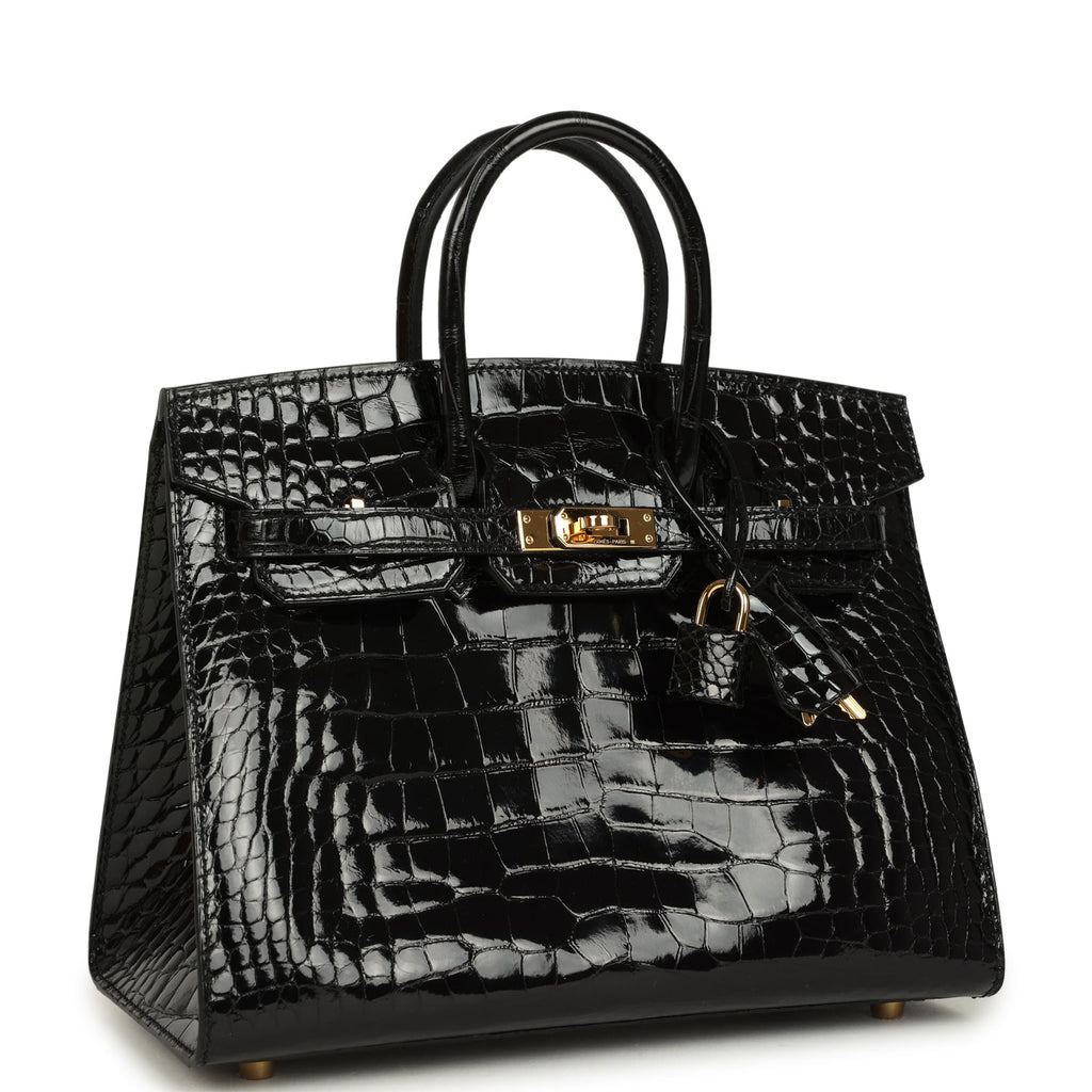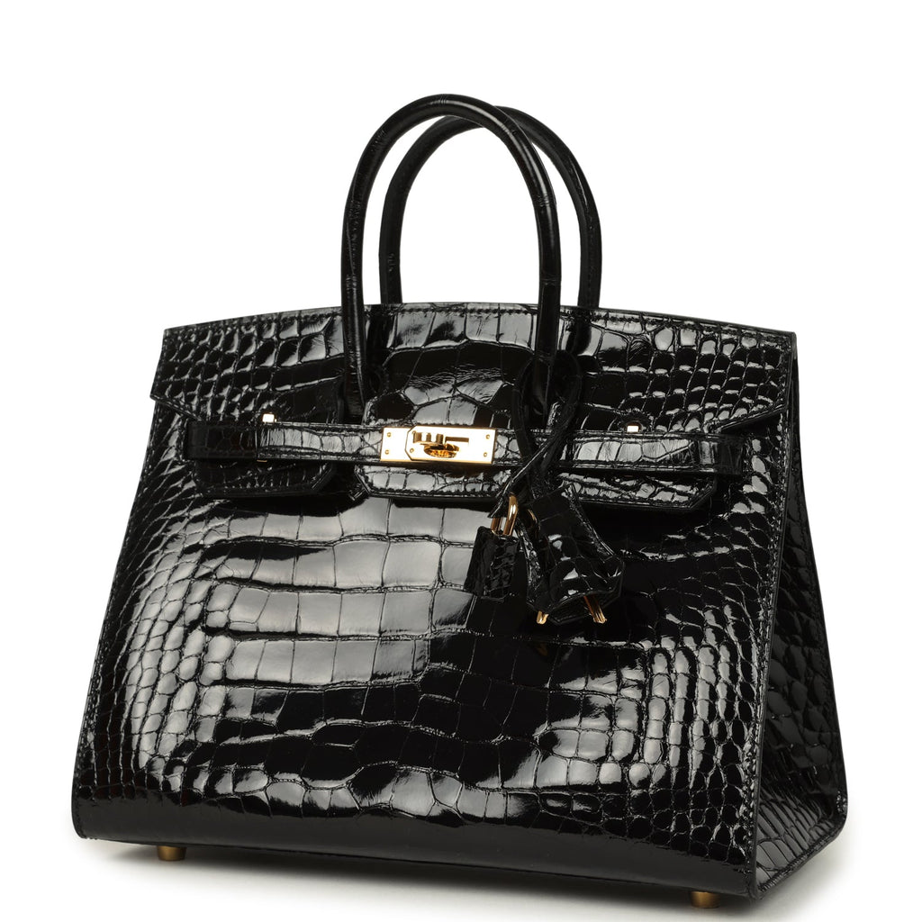 Home Hermès Pre-Owned Birkin Bags for Sale Pre-owned Hermès Birkin Sellier 25 Black Shiny Alligator Gold Hardware