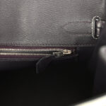 The interior is lined with Prunoir chevre leather and has a zip pocket with an Hermès engraved zipper pull and an open pocket on the opposite side.