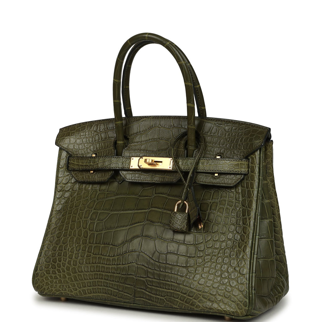 Vintage Hermès Birkin 30 Vert Olive Matte Alligator Gold Hardware